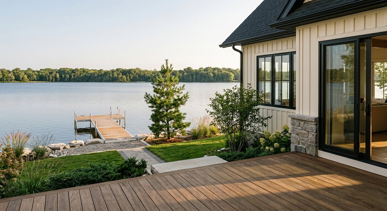 Waterfront homes near Grand Traverse Bay face unique conditions. Winters are cold, summers are mild, and humidity stays higher near the water. Winds pick up across the bay, and spring and fall bring big day‑night temperature swings. These factors put extra stress on glazing, seals and frames.